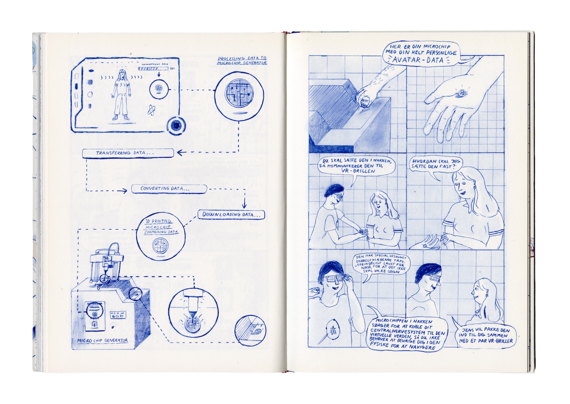 Pencil, digital coloringAn extract of the graphic novel I made as my master project at KADK (The Royal Danish Academy) in 2017. The story was about identity and virtual parallel worlds. A personal take on the cyperpunk genre. Written by me. Unfortunately I didn’t have time enough to finalize the project.