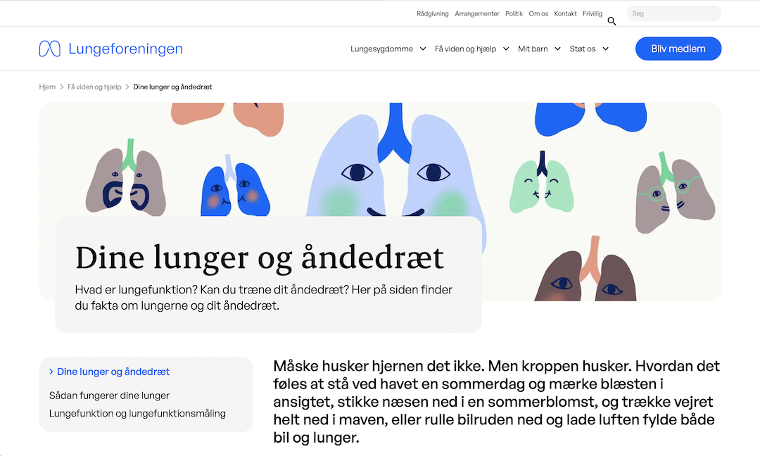 The illustrations are made as a package solution whereas Lungeforeningen is able to use the illustrations across all their platforms – including print and digital media.