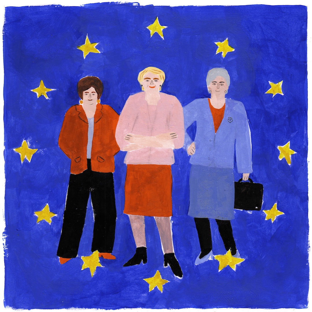 Acrylics, color pencils, pencilMade for an article about the women that are leading EU.