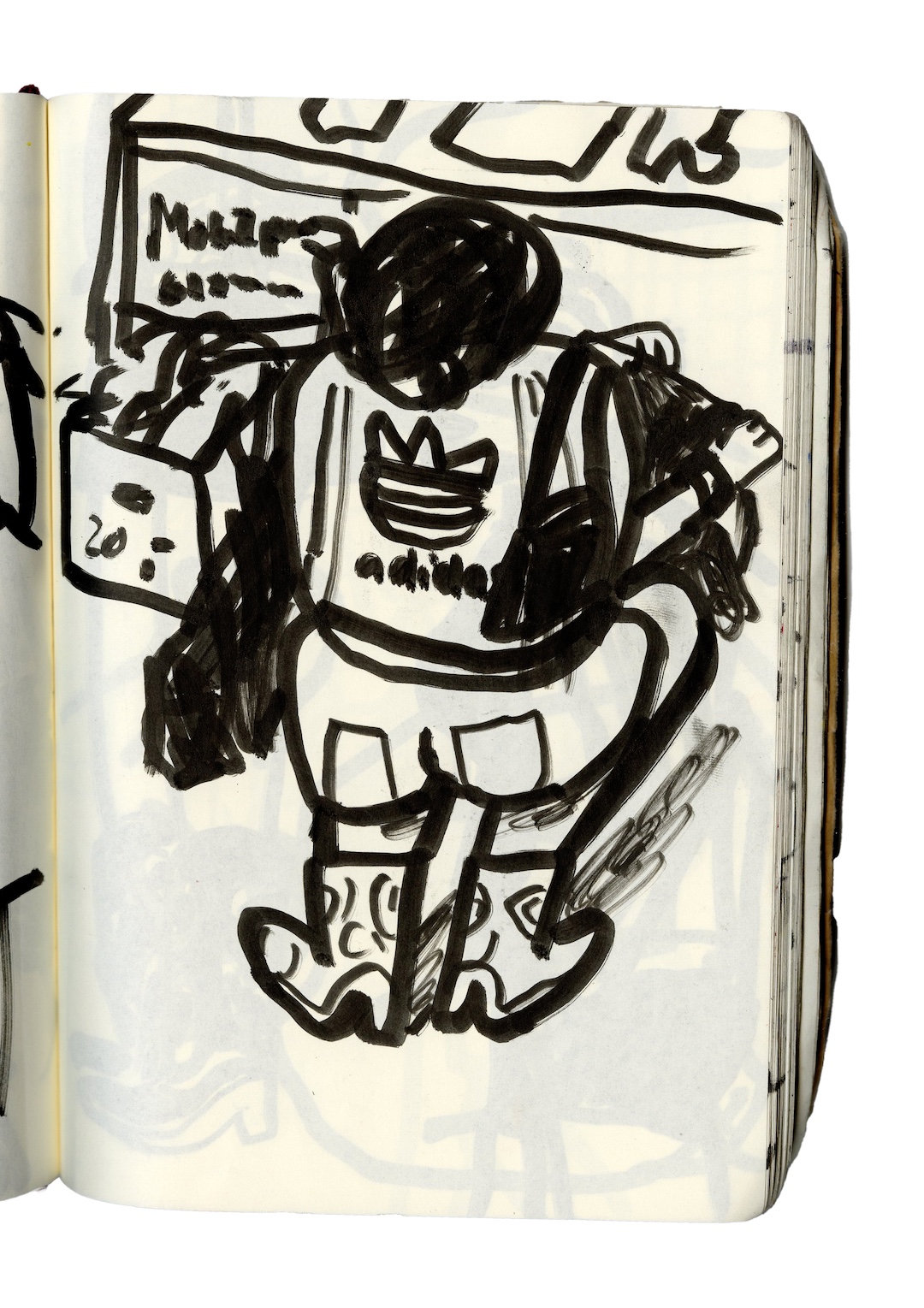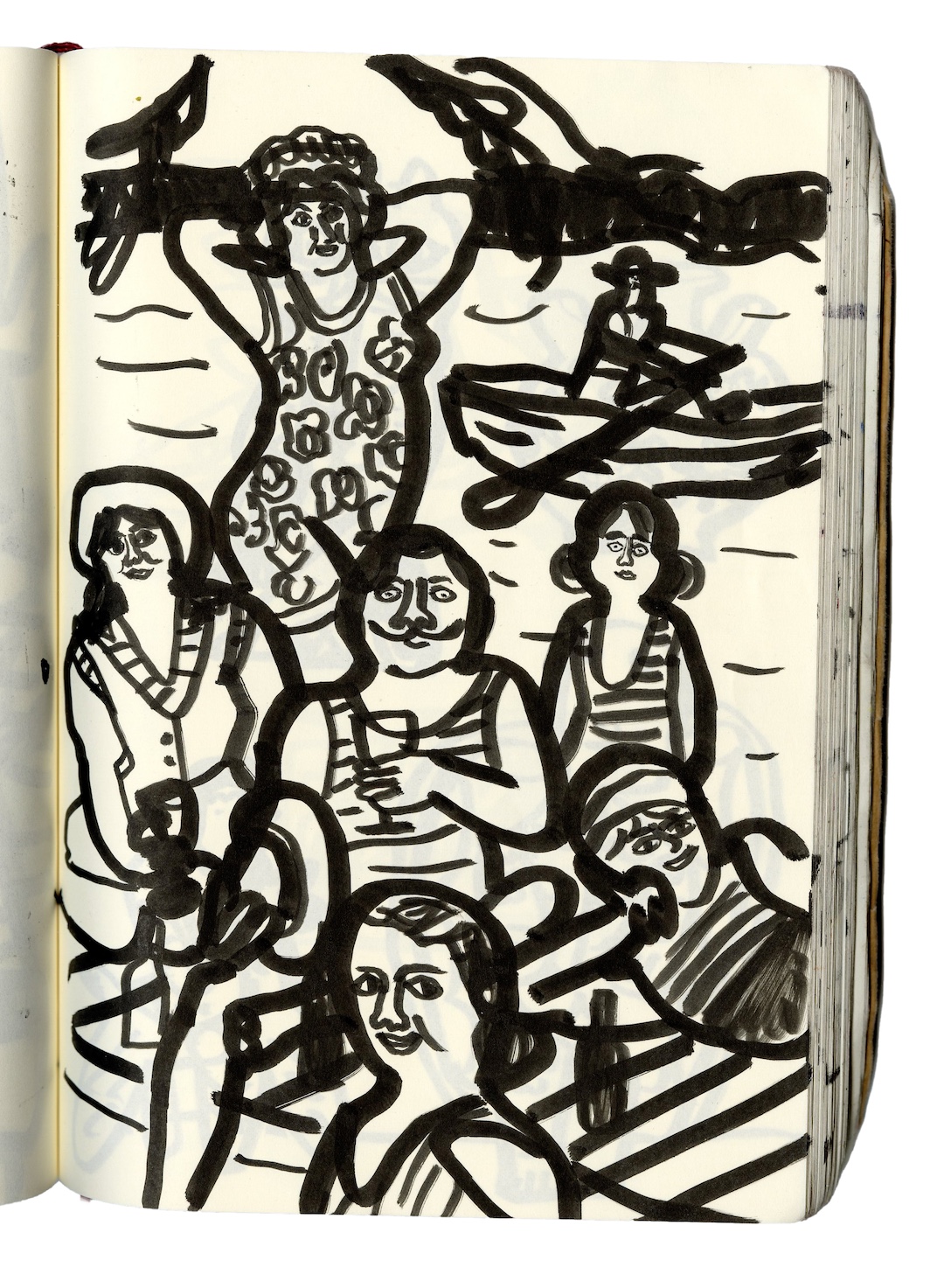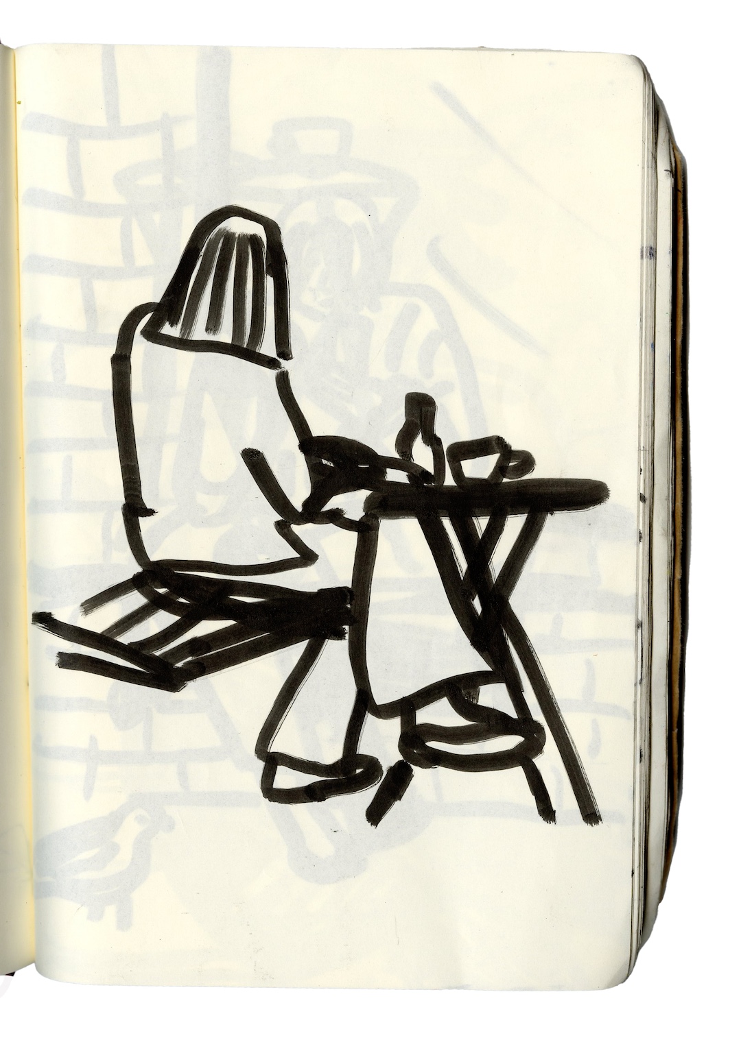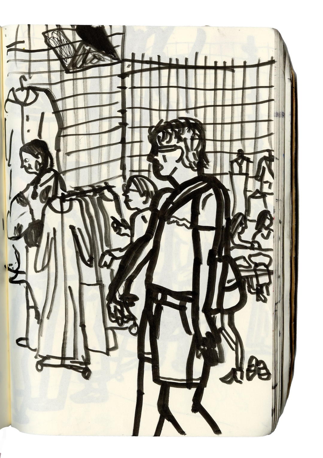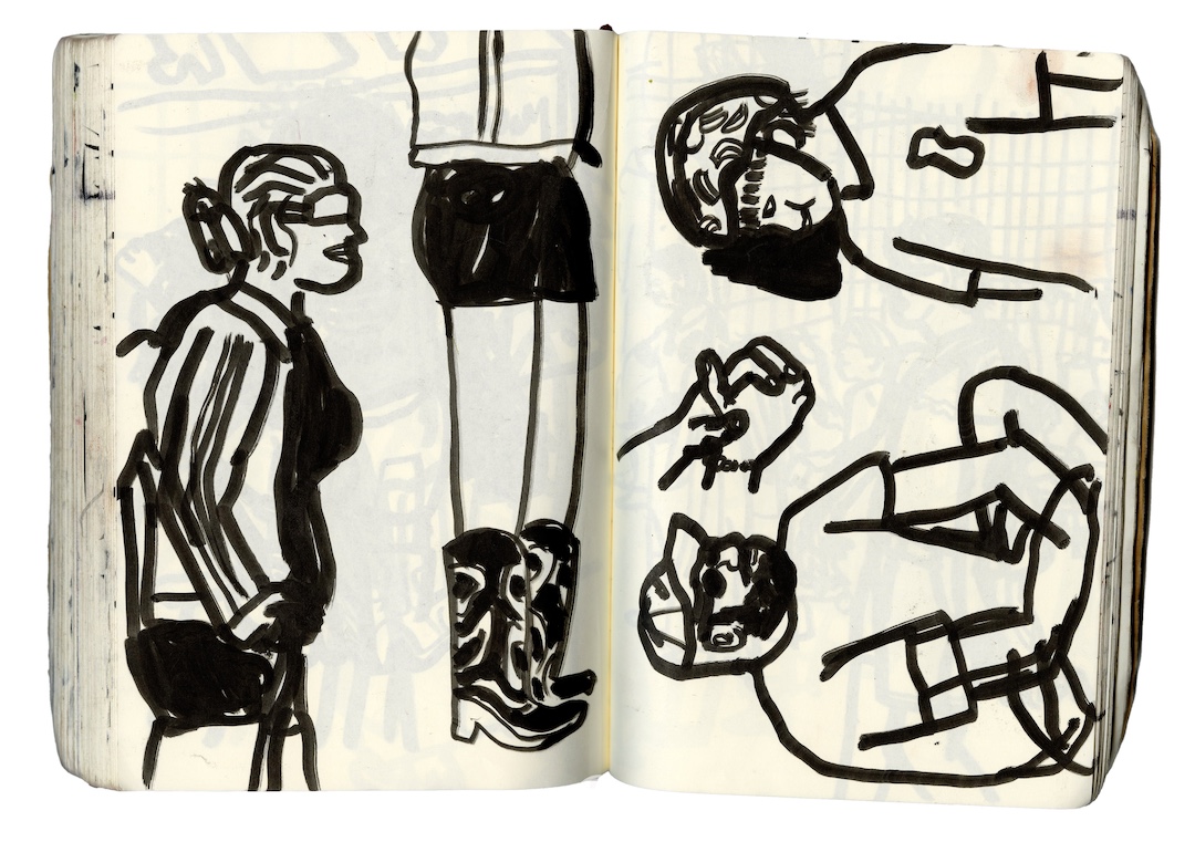 I almost always carry my sketchbook with me. I love observing and drawing wherever I am. The result is quick, spontaneous sketches—usually done in ink.