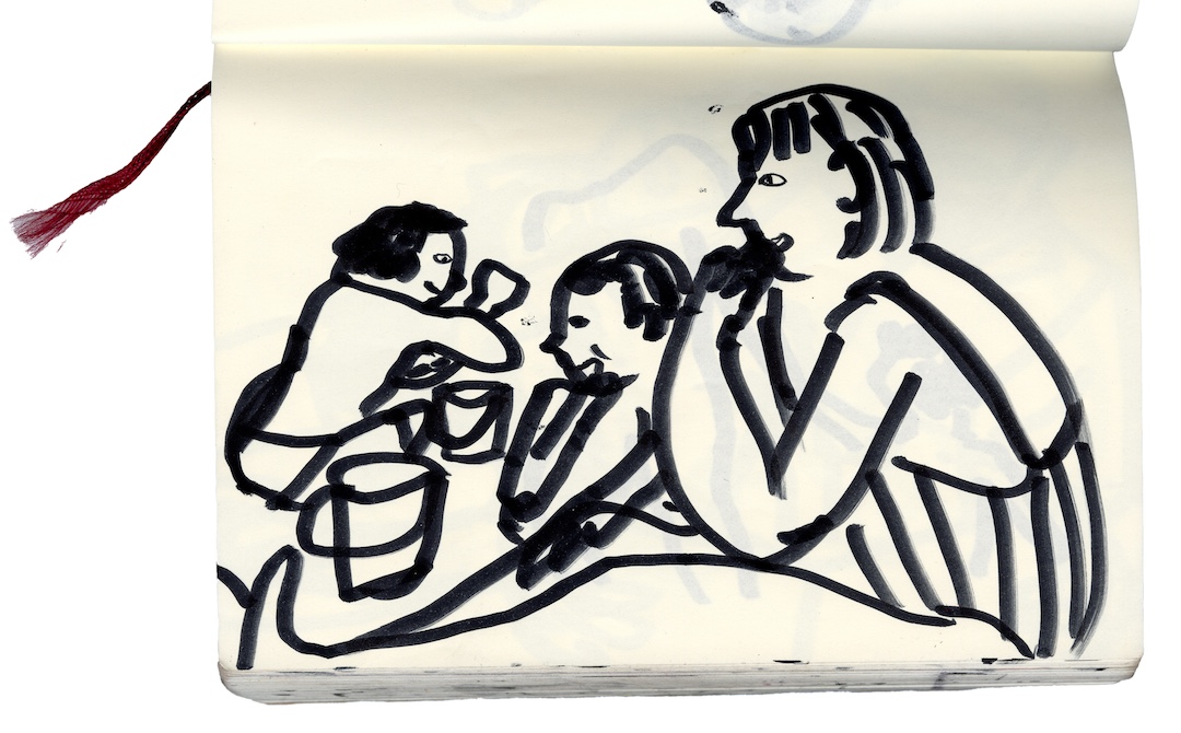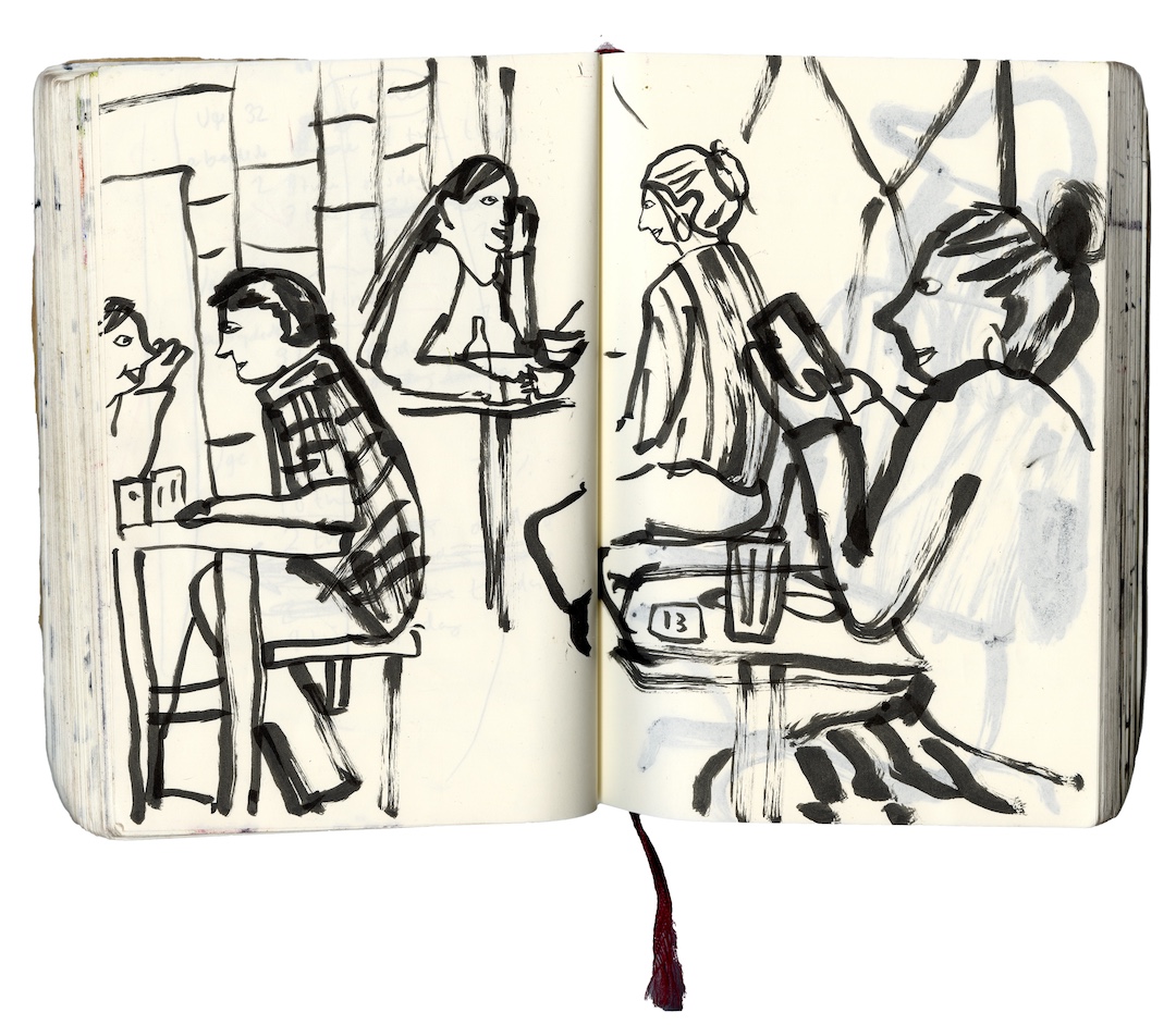 I almost always carry my sketchbook with me. I love observing and drawing wherever I am. The result is quick, spontaneous sketches—usually done in ink and in just a few seconds.